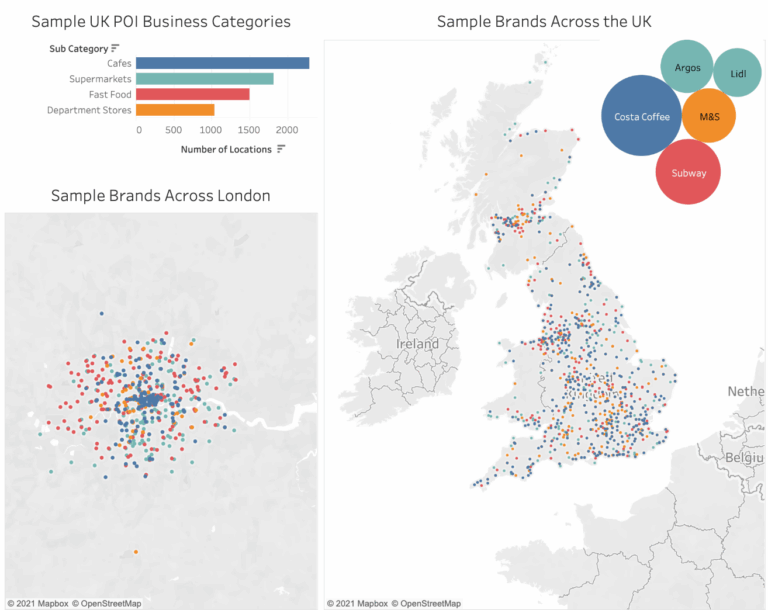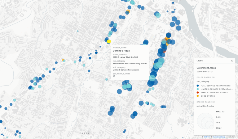 Explore interactive maps and dashboards built with SafeGraph Places to see how location data translates into measurable insights.