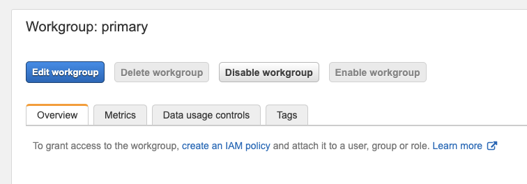 11a. View the Amazon Athena workgroup setting by clicking “workgroup: primary” in the top left navigation links.