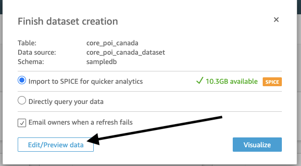 19. When you see “finish dataset creation”, choose “edit/preview data.”