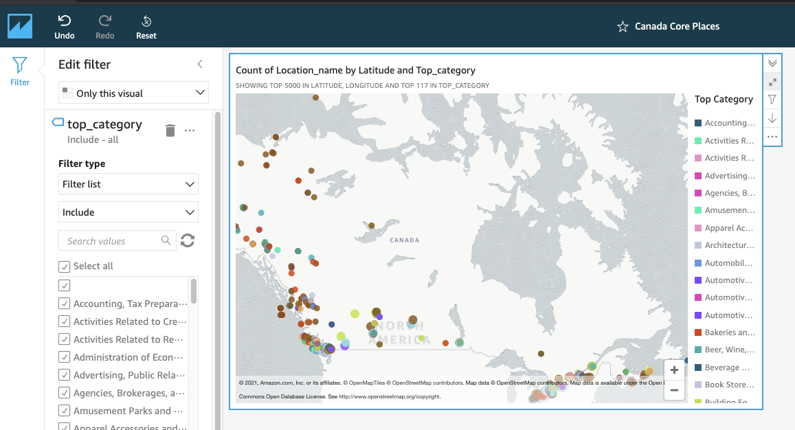 8. To easily query your SafeGraph Core Places - Entire Canada (Essential Columns) data, you can use Amazon Athena which gives you a SQL interface to query the dataset.