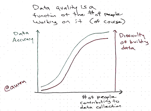 We put up with really low quality data, because people aren’t engaged with the process of designing and collecting it. Most people do not understand where and how their data is used. So even when they have perfect information and could make really easy fixes to their data, it just doesn’t happen. Helping people participate in data collection can massively improve data quality.